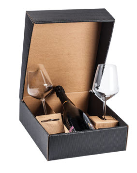 Art. 3217 27,5×33,5×9,5h – Scatola onda per 1 bottiglia con 2 calici universum 55 cl con imballo esterno