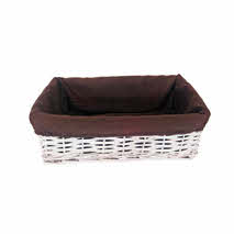 Mastella rettangolare bianca con stoffa marrone