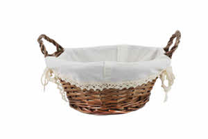 Cesto rotondo marrone con stoffa 2 manici